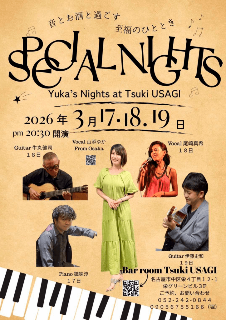 2026.3.18(水)Pops/洋楽JazzLive 山添ゆか(vo.)尾崎真希(vo.)牛丸健司(gt.)